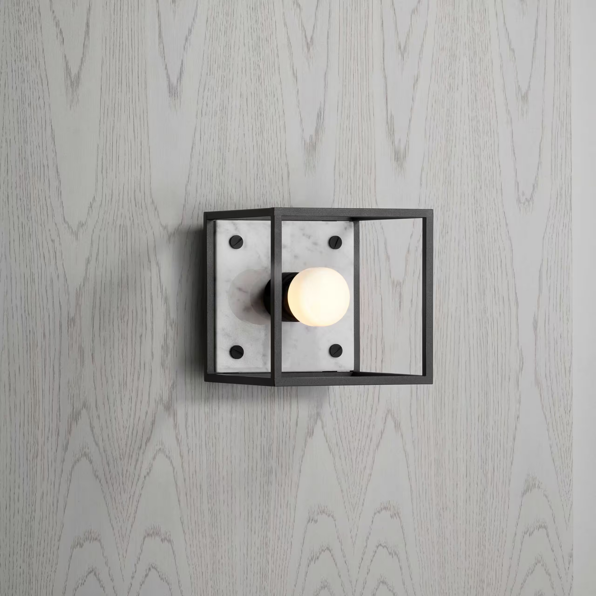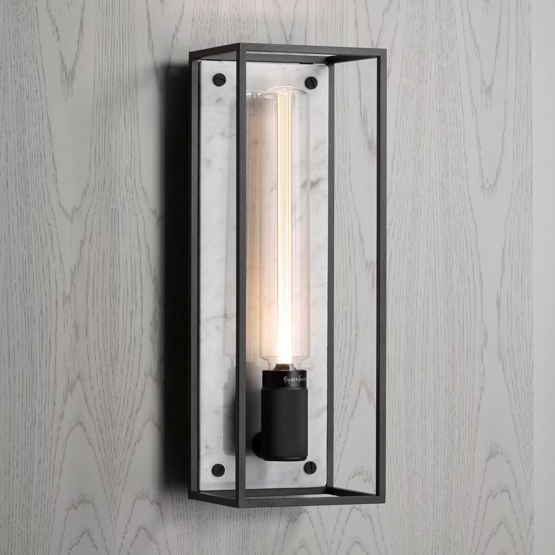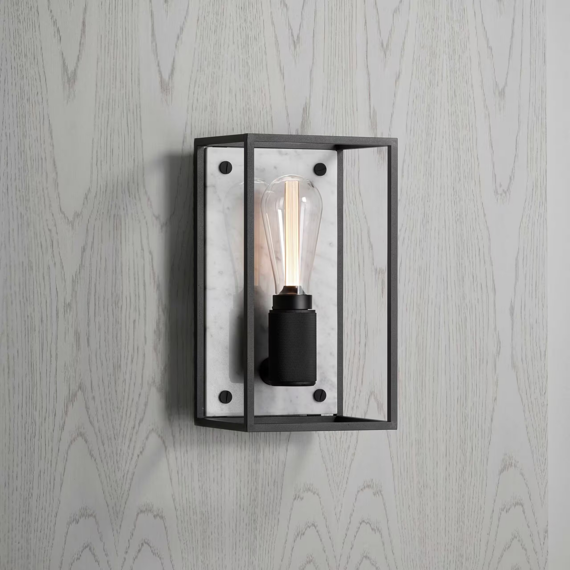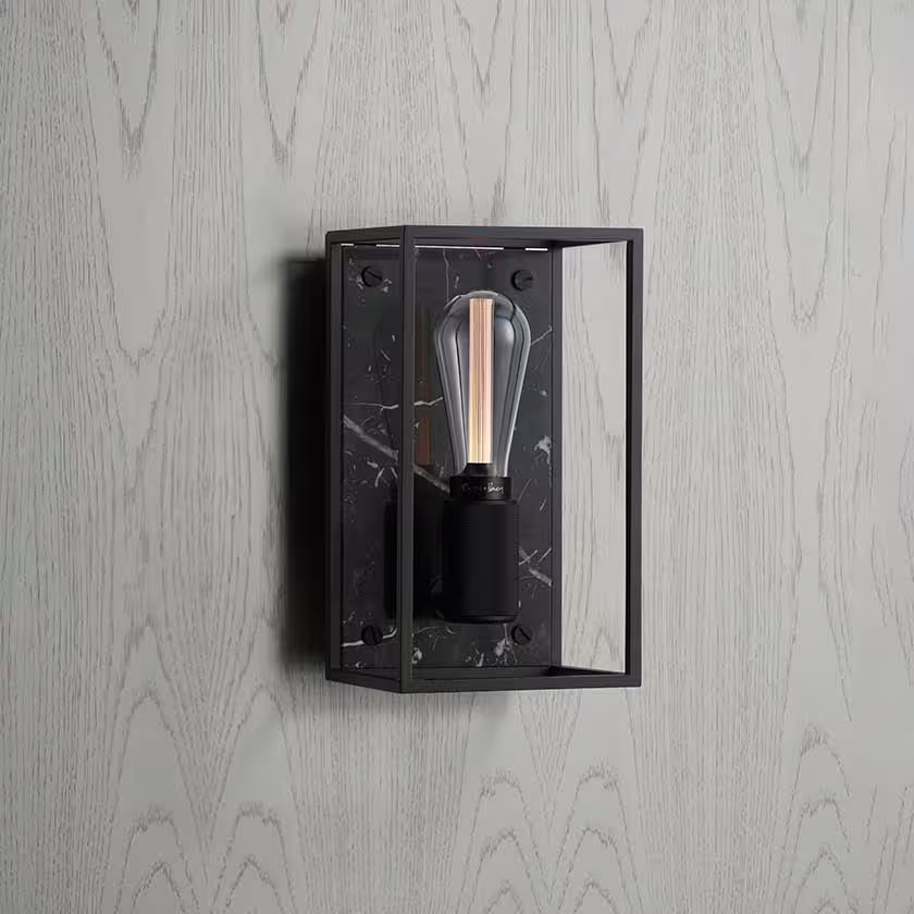 The wall light features a matt black, cross-knurled, lamp holder and our signature coin screws.