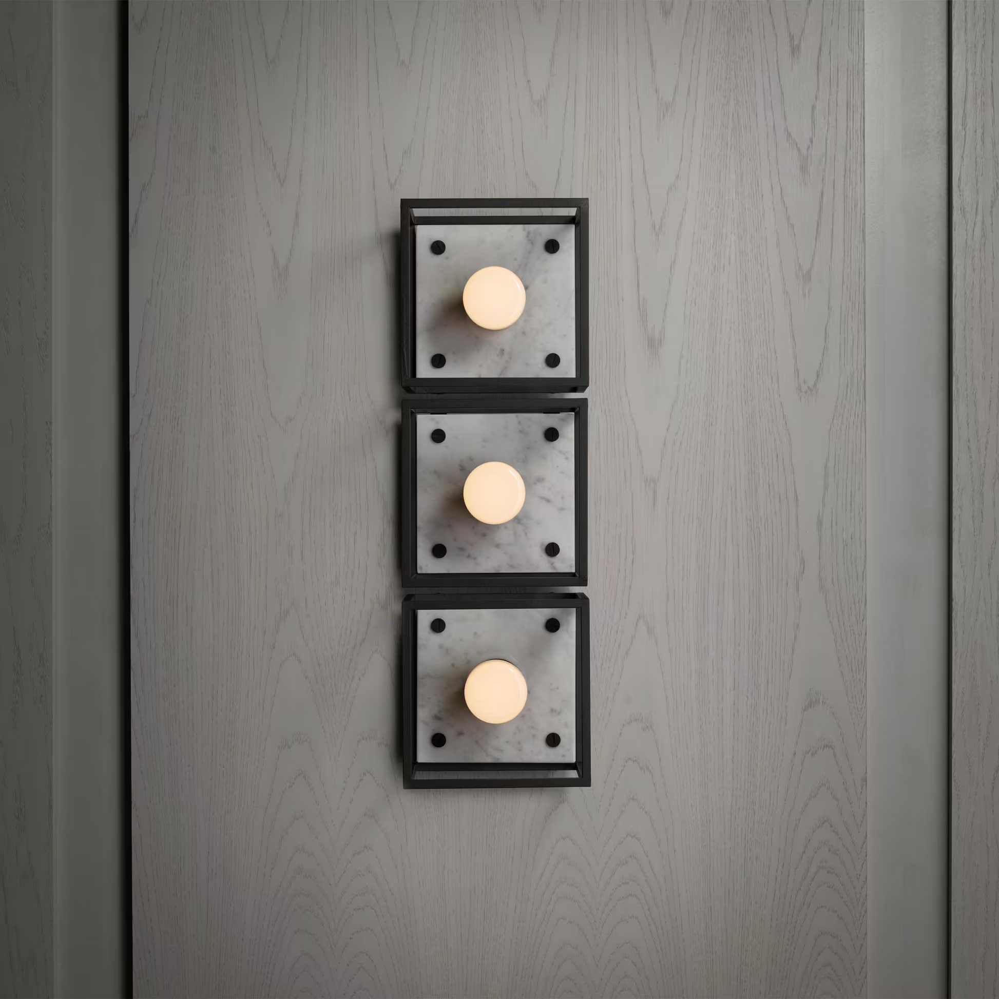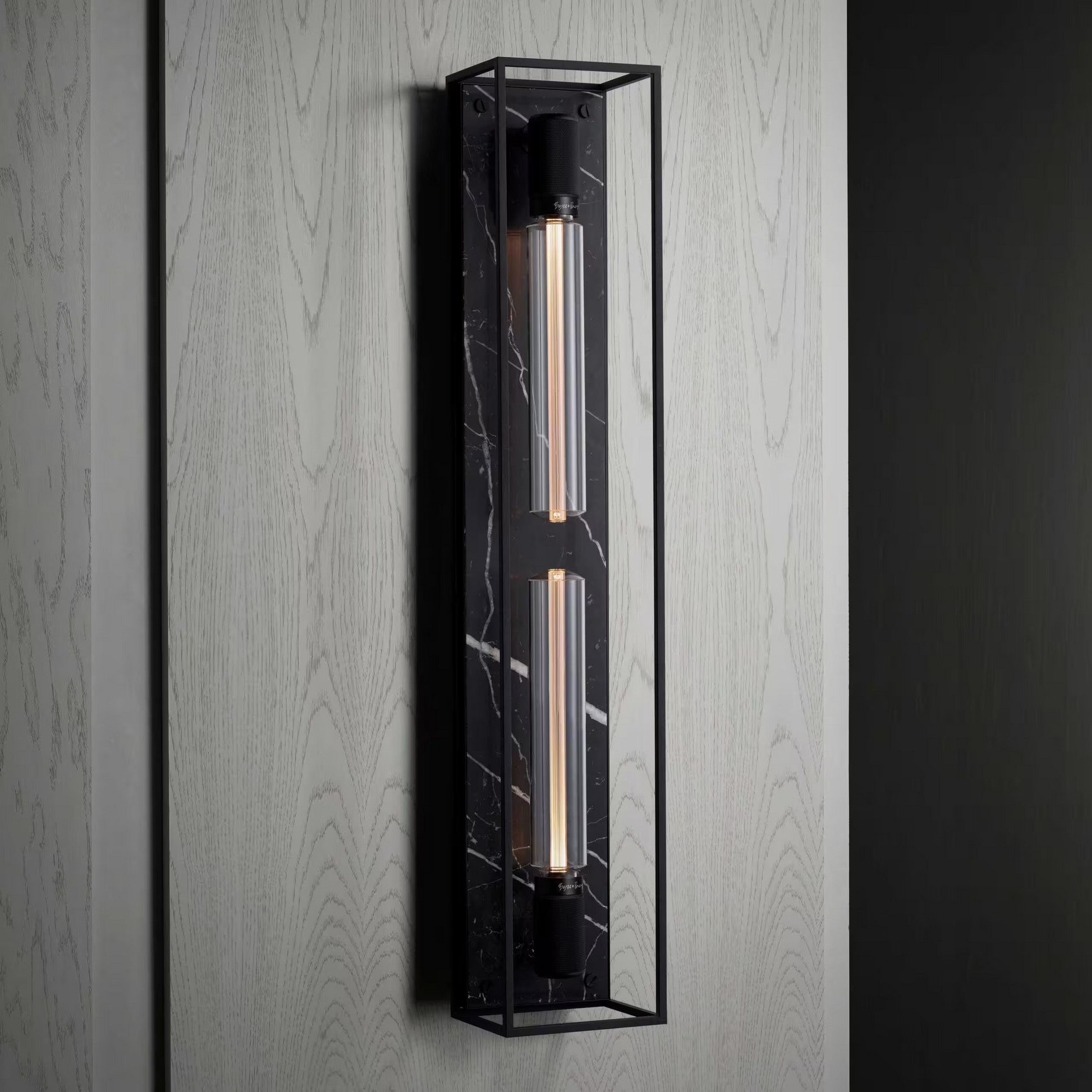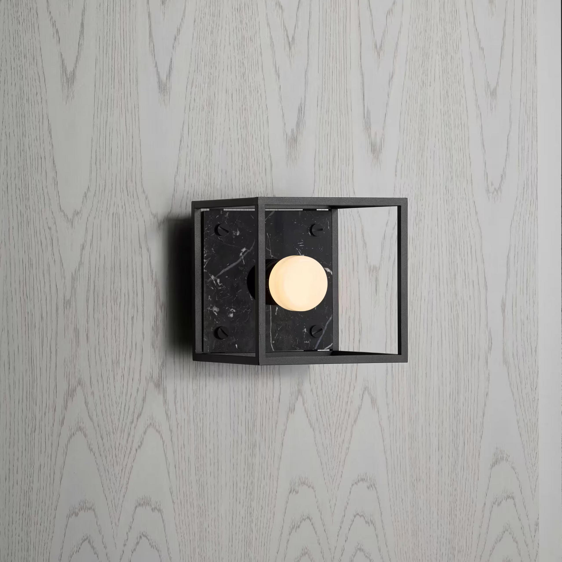 The wall light features a matt black, cross-knurled, lamp holder and our signature coin screws.