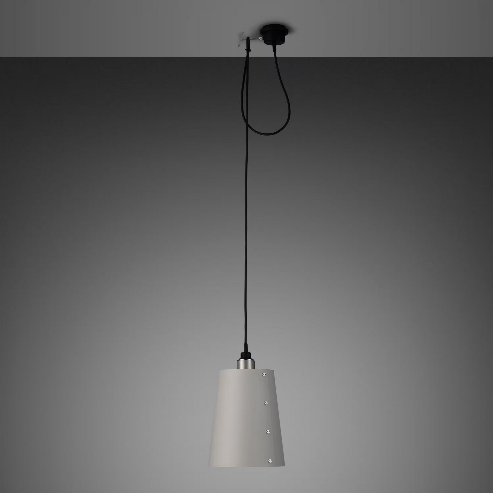 This light comes with a solid brass hook which screws into the black rubber ceiling rose and allows you to manually adjust the drop length of the pendant. The hook can also be removed and reinstalled into your ceiling to allow the pendant to be moved above any furniture you wish.