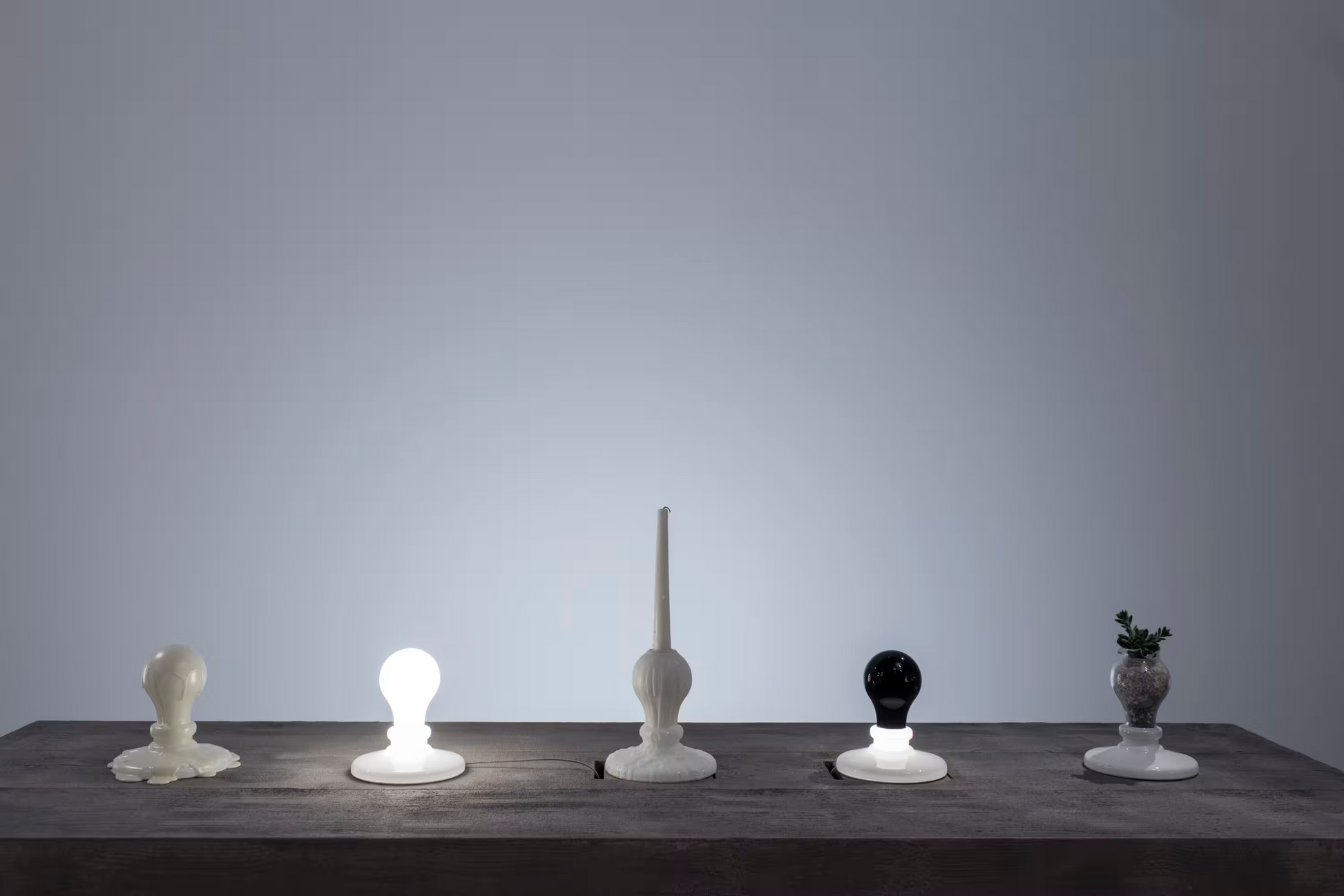Black Light works on the concept of inversion: the bulb housing emits light, while the bulb itself remains dark.