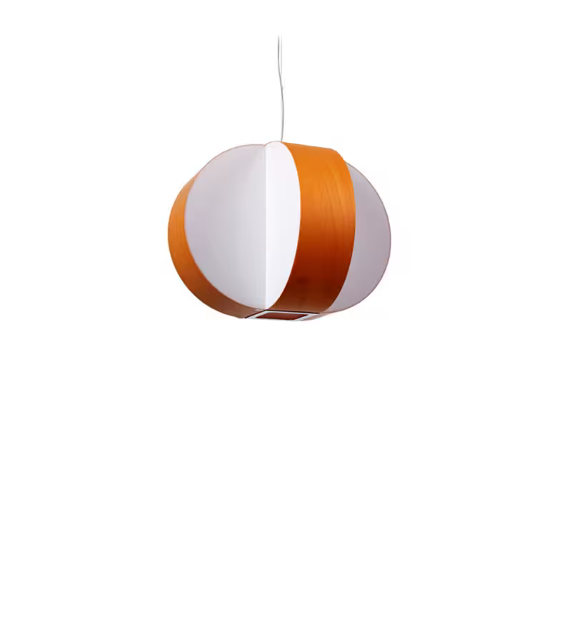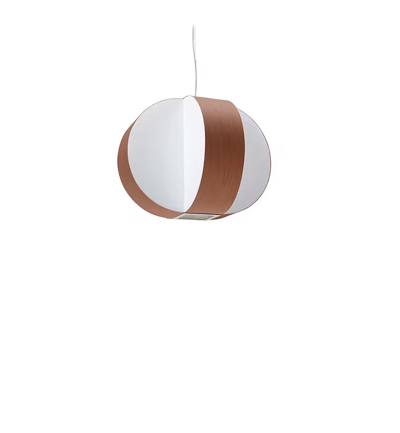 The Carambola lamp enjoys a striking interplay between its white light panels and wood veneers: the former, more illuminating; the latter, warmer. These differing segments of light work together in perfect equilibrium. Carambola is available as a small or medium pendant and a table lamp. Prepossessing in either form, it has a pleasingly serene disposition.