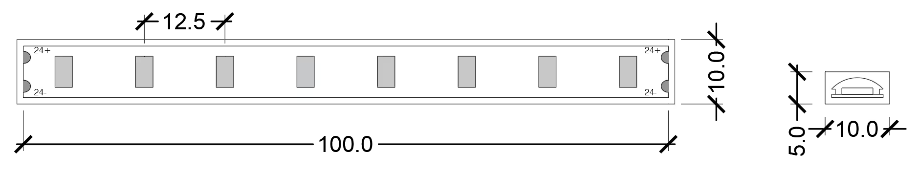 Low output LED strip IP67 24V 7.2W/m CRI80 5m length