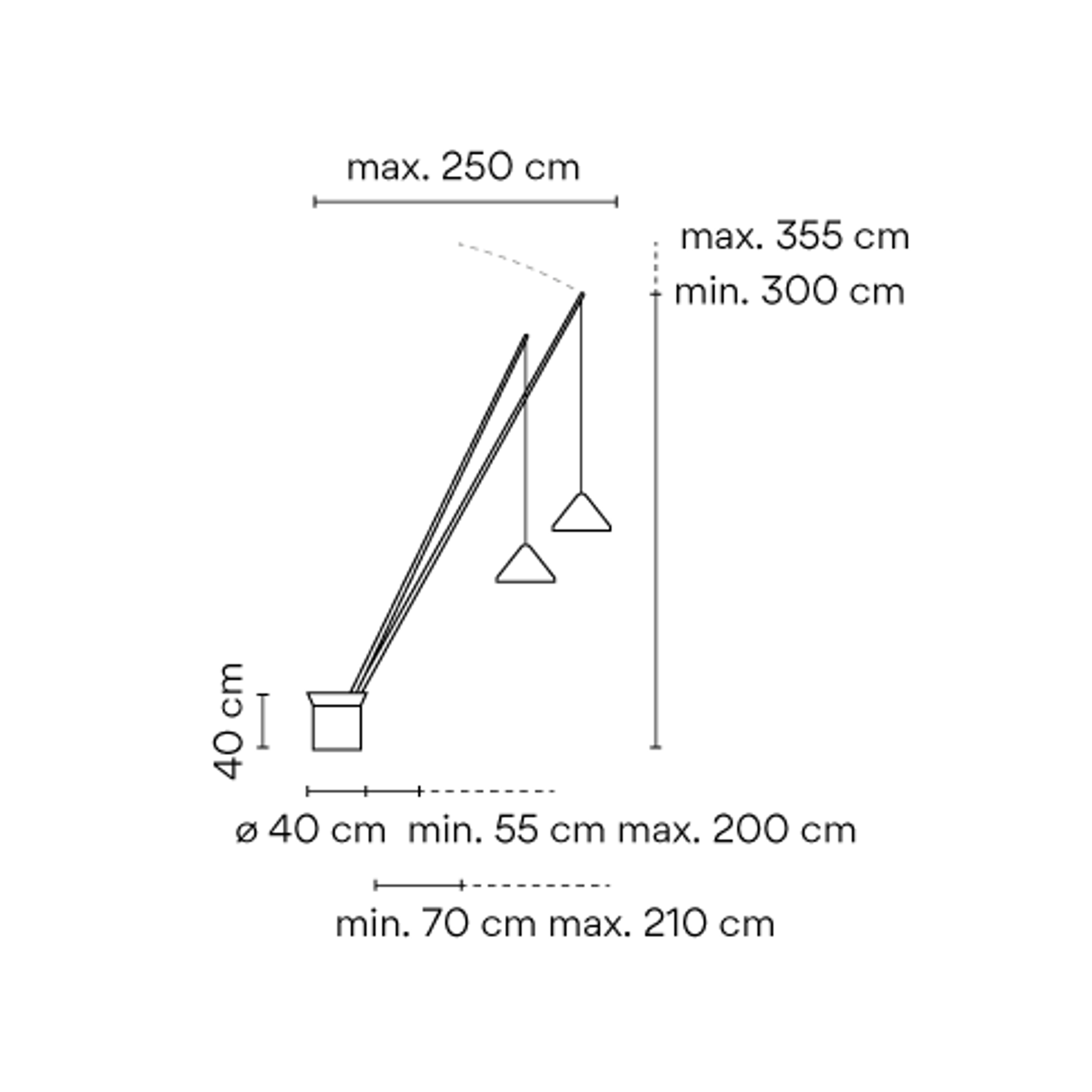 - Maximum height (cm): 355